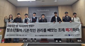 부산, 충남, 경기 등 서울 아닌 지역 청소년들도 서울시의회의 학원 심야교습 연장 조례와 학생인권조례 폐지 강행에 반대하고 나섰다. 민주청소년네트워크는 22일 오후 3시 서울시의회 기자실에서 기자회견을 열고 서울시의회 국민의힘 의원들이 주도해 추진 중인 서울시 학원 심야교습 연장과 학생인권조례 폐지에 대해 우려의 목소리를 전했다. "학원 교습시간에 대한 형평성"을 이유로 학원업자들이 교습시간 연장을 주장하는 것에 대해 "이웃집이 도둑질한다고 똑같이 따라할 것인가"라는 발언도 나왔다. 부산 소재 고등학교 재학 중인 곽동현 민주청소년네