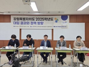 수능과 자율학습만 강조하는 강원도교육청의 진학지도 정책이 대입 실적 부진의 원인이라는 진단이 나왔다. 지난달 29일 열린 모두가특별한교육연구원(교육연구원)의 포럼에서다.교육연구원은 ‘강원특별자치도 2025학년도 대입결과와 정책 방향’을 주제로 한 포럼에서 “고교학점제 체제에서 강원 학생들의 생기부 경쟁력을 강화하는 것이 시급하다”라는 주장이 제기됐다.고3 진학지도 경력 10년 이상의 엄태영 교사는 주제 발표를 통해 “2025년 대입 결과를 분석하면 주요 대학 합격자 수는 하락세를 나타내고 있고 의대의 경우 지역인재 정원 증가분도 채