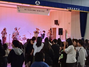 제주 신례초등학교는 지난 20일, 공동교육과정의 일환으로 성읍초와 신산초 학생들을 초청해 ‘싸우스카니발과 함께하는 제주어토크콘서트’를 진행하였다.싸우스카니발은 자신들의 제주어 노래인 ‘바당이 나꺼여’, ‘이어도사나’, ‘고싸고라시녜 설룬 애기야’, ‘몬딱도르라’ 와 다른 문화권 나라의 노래인 ‘Wishes’, ‘Jamaica ska’, ‘Carnival’, ‘Chan chan’, ‘El cuatro de tula’ 등 15곡의 노래를 그와 관련된 이야기와 함께 공연했다.싸우스카니발의 제주어 노래와 그 노래들과 관련된 제주의 이야기를