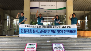 전국교직원노동조합 제주지부(전교조 제주지부)가 “제주도교육청은 민원 대응 시스템 작동 실패에 대한 책임 있는 진단과 원인을 공개하라"고 촉구했다.전교조 제주지부는 26일 제주도교육청 앞에서 기자회견을 열고 지난 6월 실시한 교원 인식 조사를 분석한 실태 진단 결과를 발표하며 이같이 주장했다.전교조 제주지부는 “8월 12일 제주도교육청이 내놓은 ‘교육활동 보호 정책 강화 방안’은 왜 기존 체계가 작동하지 않았는지에 대한 성찰은 부재하며, 제대로 된 진단 없이 발표한 대책들은 형식적 제도 마련에 불과하다”라고 지적했다.조사 결과 응답자